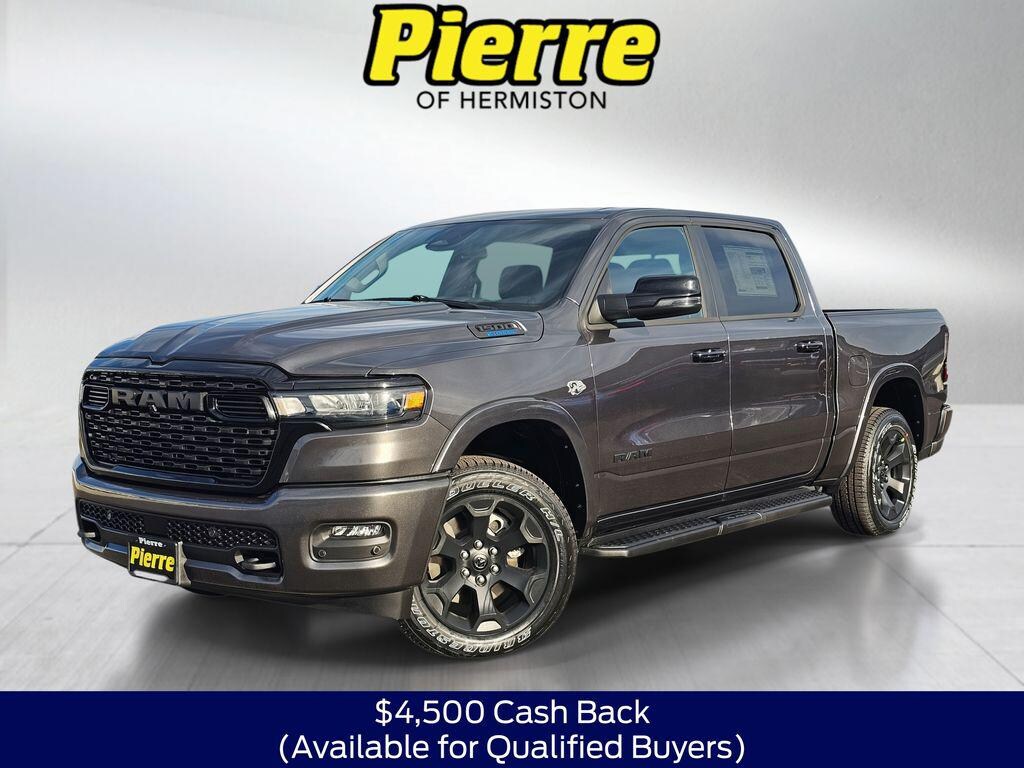 The 2026 RAM 1500 Big Horn Crew Cab 4x4 combines rugged capability with modern technology and comfort. Powered by a 5.7L V8 HEMI with eTorque and an 8-speed automatic, it delivers strong towing, hauling, and confident on- and off-road performance.